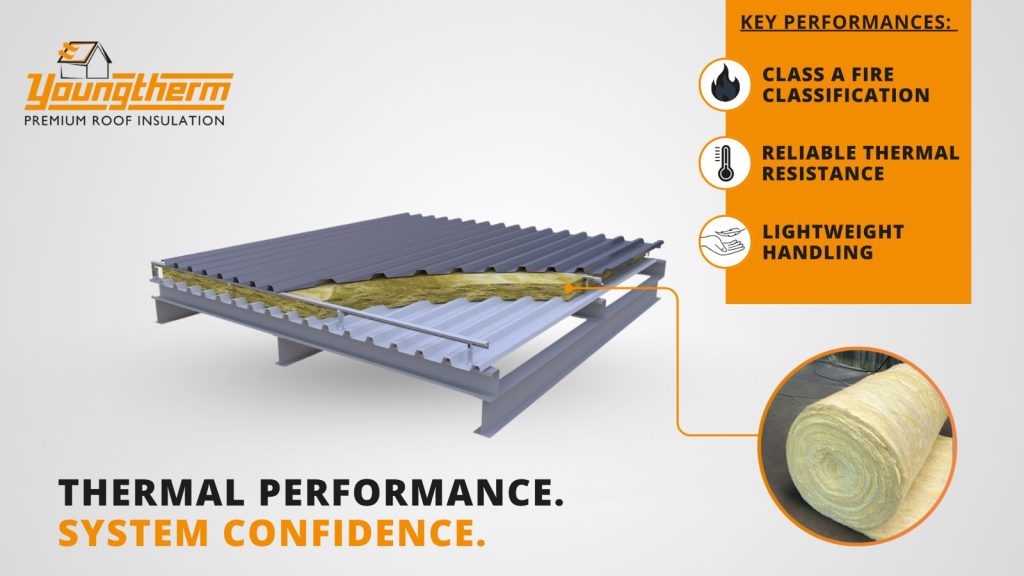 Youngtherm® Glass Wool insulation reduces heat transfer through roof assemblies by providing effective thermal resistance.